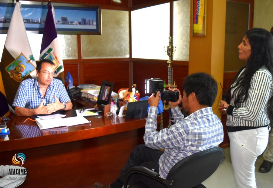 En la mañana de este jueves personal de Teleamazonas, entrevistó Alcalde de Atacames Lic. Byron Aparicio Chiriboga en su despacho, sobre la programación municipal a cumplirse con motivo del Feriado de Carnaval. De esta manera se adelanta la Promoción que a partir del lunes 05 tiene planificado el Gobierno Municipal Atacames, con una visita a medios de Comunicación de la Capital de la República, para atraer el interés de los habitantes del País y gozar de este Feriado en Atacames. Nelson Carrera Rhea dialogó ampliamente con el Alcalde sobre los preparativos y actividades a cumplirse.