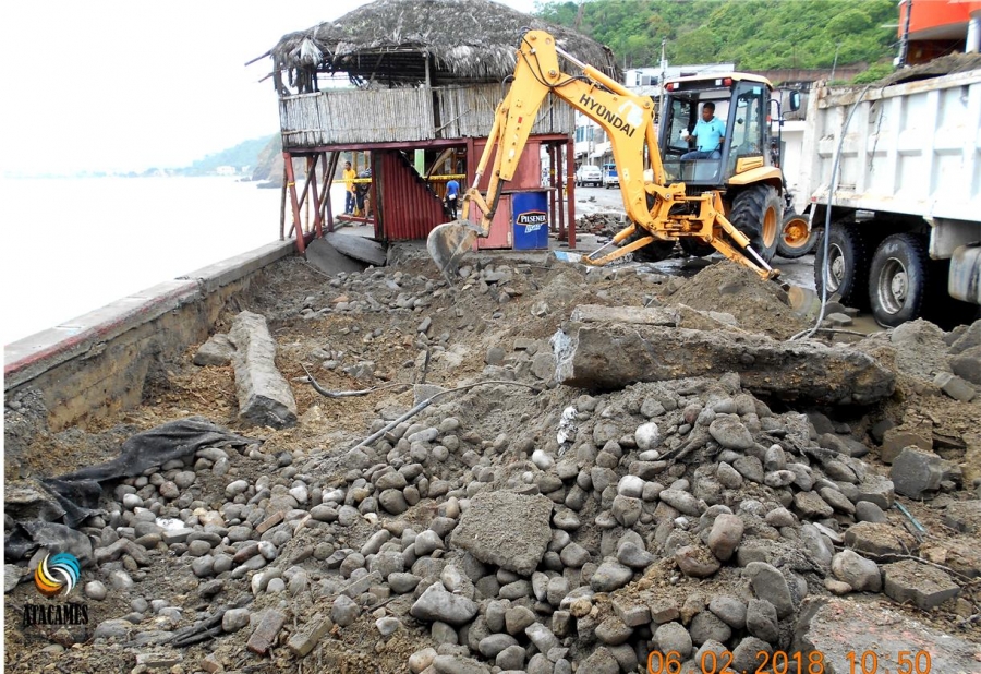 En las primeras horas de la mañana de este lunes, luego de constatar los deterioros sufridos en el malecón de Súa, debido a la fuerza del oleaje del último aguaje, el Alcalde de Atacames, Lic. Byron Aparicio Chiriboga, dispuso el ingreso de maquinaria como Gallineta, Excavadora y volquetes, para que con la disposición técnica del Director de Obras Públicas Municipal Atacames, se cumplan trabajos provisionales de mejoramiento y protección del malecón. Este trabajo emergente se realiza a fin de mejorar la imagen del sector deteriorado y que quienes nos visiten con motivo del feriado de Carnaval puedan recorrer el sector sin contratiempos.