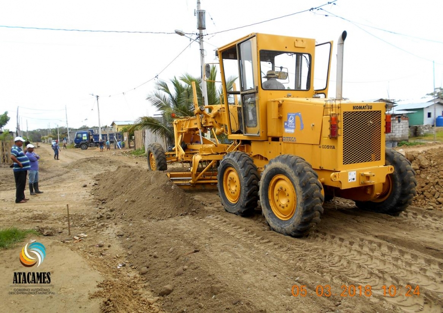 Una vez que el viernes se rasanteó varias calles y el sábado se levantó el nivel de otras con cascote y se compactó, este lunes el Alcalde del Cantón Atacames, Lic. Byron Aparicio Chiriboga, dispuso el ingreso de parte de la maquinaria Municipal, al Barrio 18 de Febrero, para comenzar a mejorar con lastre las calles de acceso a este populoso sector marginal de la Ciudad Atacames. Para el efecto se trabajó este lunes con Vibrador, Motoniveladora y dos Volquetes.