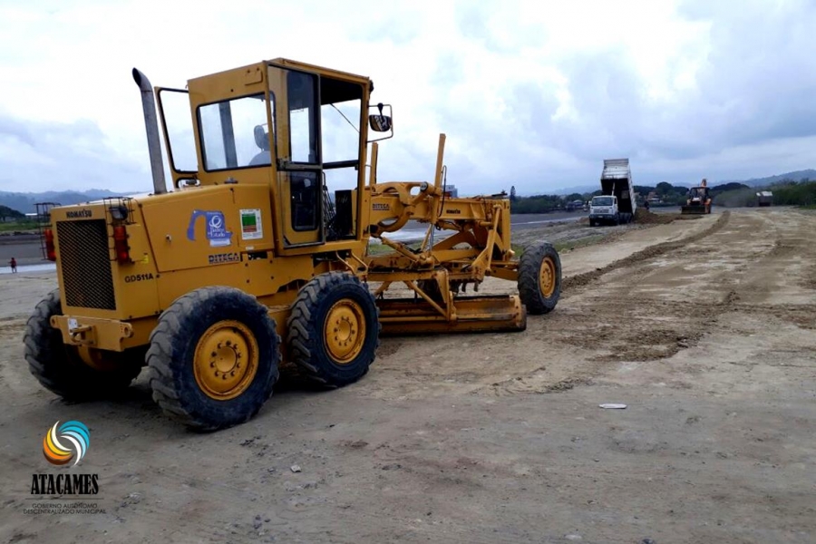 Maquinaria Municipal, avanza con el trabajo de mejoramiento de un tramo del sector de la Bocana de Atacames, para crear un espacio seguro en donde reubicar a las socias de la Cooperativa la Bocana de Atacames que diariamente laboran con la preparación de productos alimenticios para la venta a quienes concurren al sitio por solaz y esparcimiento en dos ambiente Mar y Río creando una especie de Patio de Comidas.