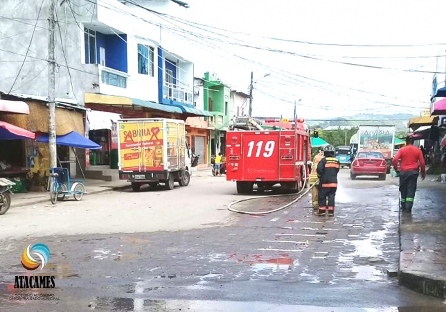 CUERPO DE BOMBEROS COLABORÓ PARA REPINTAR ZONAS DE PARQUEO EN CALLE DEL MERCADO.