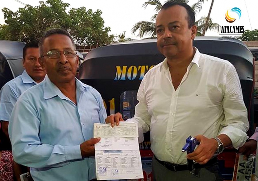 En la tarde del lunes, en el Barrio Victoria de Dios en la sede de la Compañía de Tricimotos Play Tres Ruedas, con la Presencia del Alcalde del Cantón Atacames, Lic. Byron Aparicio Chiriboga, Jefe Político del Cantón, Presidenta de la UOTMACA, Socios de la Compañía, se cumplió el acto de entrega oficial del Permiso de Operaciones, a la Compañía de Mototaxis Play Tres Ruedas, lo que facilitará su labor diaria, enmarcados en la Ley.