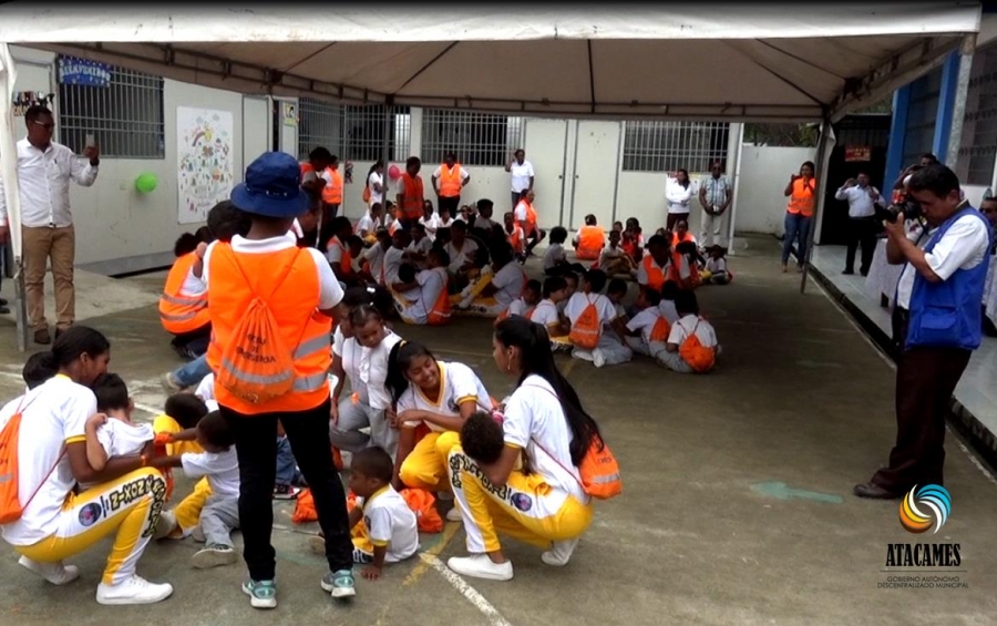 Como cierre del Acto en homenaje a la vista del Residente de la Misión Japonesa JICA, Autoridades Provinciales y del Cantón Atacames, los 140 estudiantes con discapacidad, cumplieron un simulacro en caso de evacuación ante un Sismo, el mismo que tuvo una duración de 40 segundos, para salir de las Aulas y ubicarse en Sitios Seguros establecidos en el patio de la Unidad Educativa, lo que fue aplaudido por las Autoridades y Padres de Familia presentes en el acto.