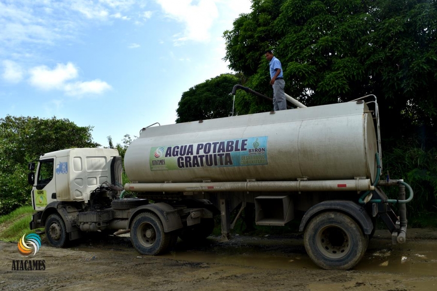 Cumpliendo disposiciones del Alcalde del Cantón Atacames, Lic. Byron Aparicio Chiriboga, Desarrollo Comunitario continúa coordinando la entrega de Agua Potable a Instituciones Educativas del Cantón y otras como Hospital, Fiscalía, Función Judicial etc. La entrega se cumple de manera alternada, ya que, no es posible entregar a la misma institución dos y tres veces seguidas a la semana.