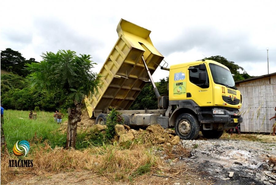 A partir de las 10 de la mañana de este viernes, maquinaria Municipal Atacames se presentó frente al terreno que el Municipio declaro de Utilidad Pública para ocupación inmediata, para el montaje de 20 Viviendas de Bambú, construidas por la Fundación CAEMBA, para igual número de Familias afectados por los sismo y que aún viven en Carpas en la parroquia Tonsupa. Las viviendas se armarán desde el miércoles. El Trabajo de desbroce y levantada del suelo con Cascote. La Maquinaria Municipal solo cumplió con colocar dos viajes de materiales y no se pudo cumplir lo convenido con los damnificados debido a la prohibición por parte de los supuestos propietarios de dichos terrenos y ante la no presencia Policial para resguardar el trabajo Municipal.