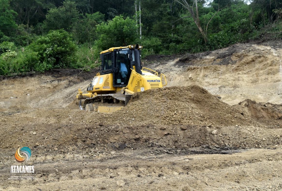 Dispuesto por el Alcalde del Cantón Atacames, Lic. Byron Aparicio Chiriboga, el Tractor Komatsu de Propiedad Municipal, una vez que recibió mantenimiento, ingresó a continuar el trabajo pendiente, en el área de terreno donado para la construcción de una Cancha Deportiva y Área Poblacional. La maquinaria labora repartiendo el material en toda el área destinada para el efecto, pero, se espera una cargadora y un volquete para repartir material como relleno para terrenos circundantes a la zona en donde se trabaja de acuerdo con la disposición.