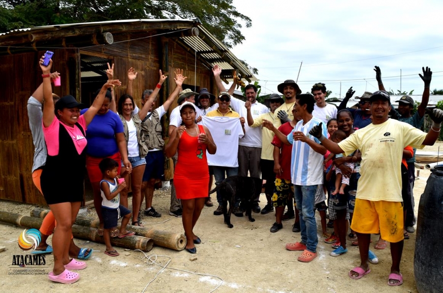 Con la presencia del Alcalde del Cantón Atacames, Lic. Byron Aparicio Chiriboga, en la mañana y tarde del martes, Personal de Técnicos CAEMBA de la Fundación Raíz, beneficiarios del Proyecto, voluntarios y Personal Municipal Atacames, realizaron una minga y lograron armar cuatro viviendas más de Bambú en menor tiempo que el utilizado el día anterior. Voluntarios y beneficiarios se mostraron satisfechos con la labor realizada en beneficio de las personas que aún viven en Carpas.