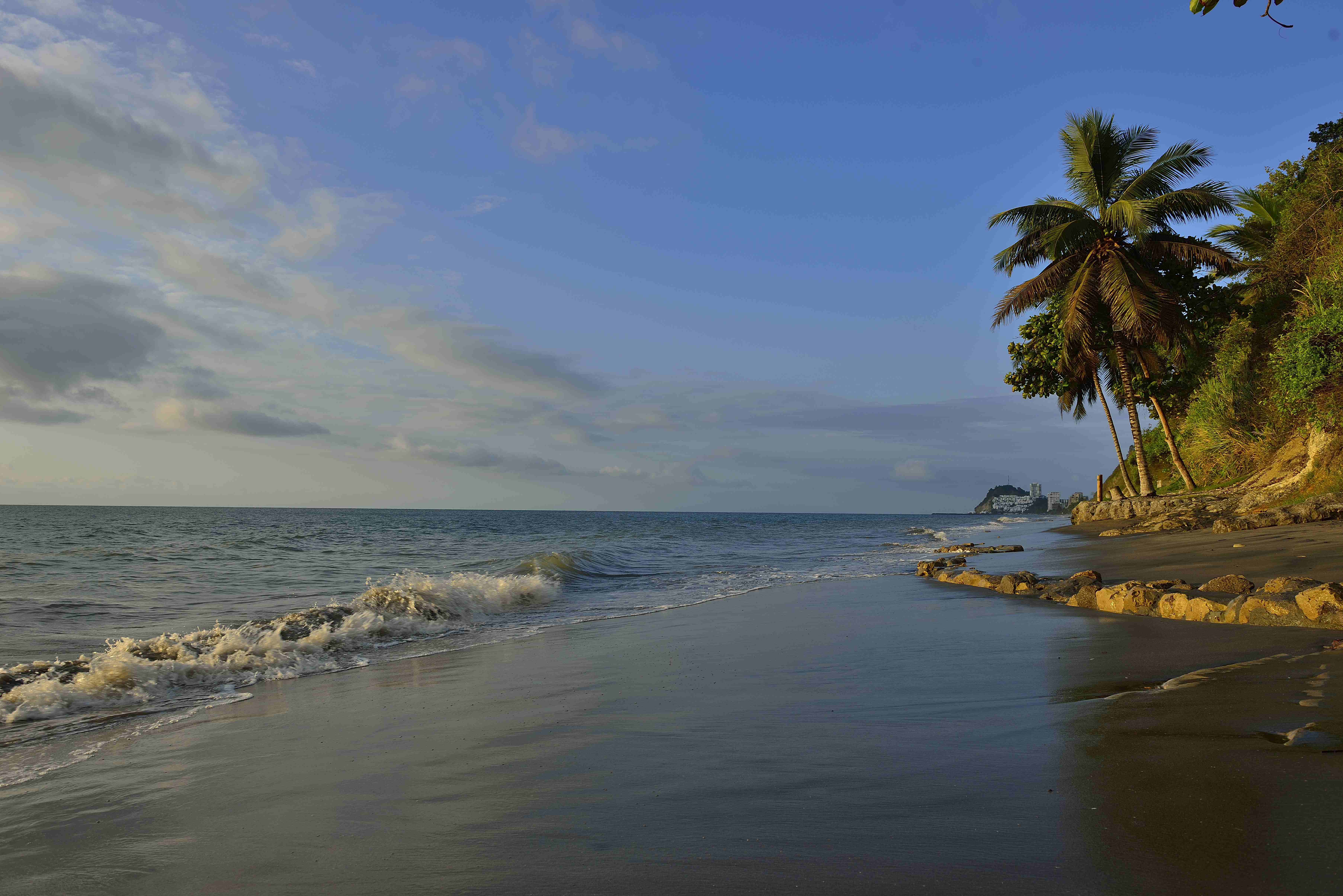 La playa tiene una extensión aproximada de 5 a 6 Km. con un ancho de 500m de amplitud y cuenta con un perfecto clima tropical durante casi todo el año (1º C a 32º C), lo que le permite disfrutar de todo tipo de actividades tanto en el día como en la noche.